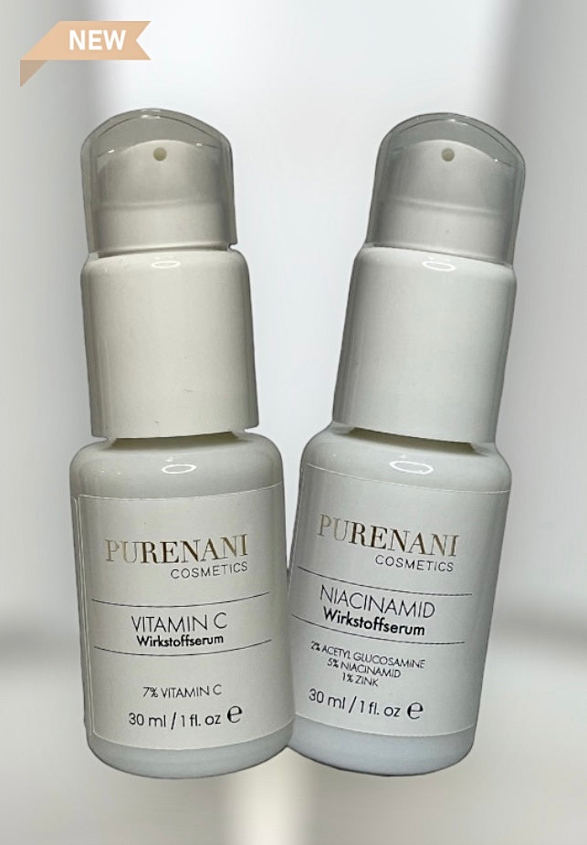 Wenn Niacinamid und Vitamin C kombiniert werden, können sie sich gegenseitig ergänzen und verstärken. Durch die Kombination beider Inhaltsstoffe wird die Wirksamkeit von Vitamin C potenziert.
